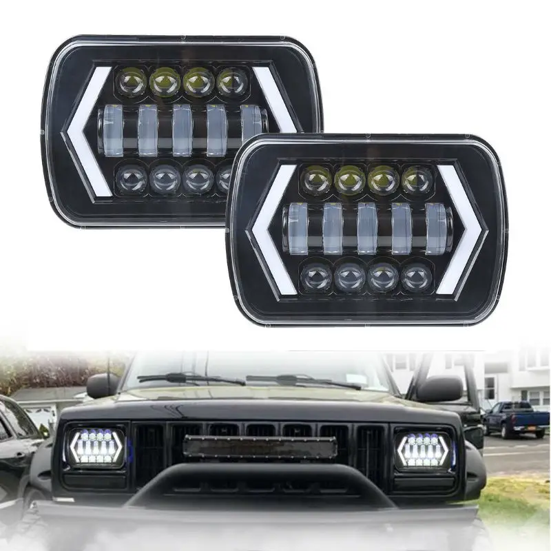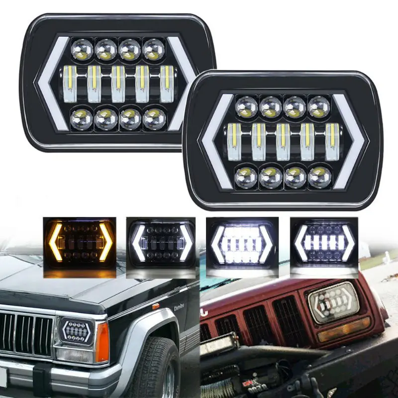 BEST SELLER 90W 7X6 5X7 LED Headlight White DRL Amber Turn Signal H4 LED Square Headlights For Jeep Wrangler YJ