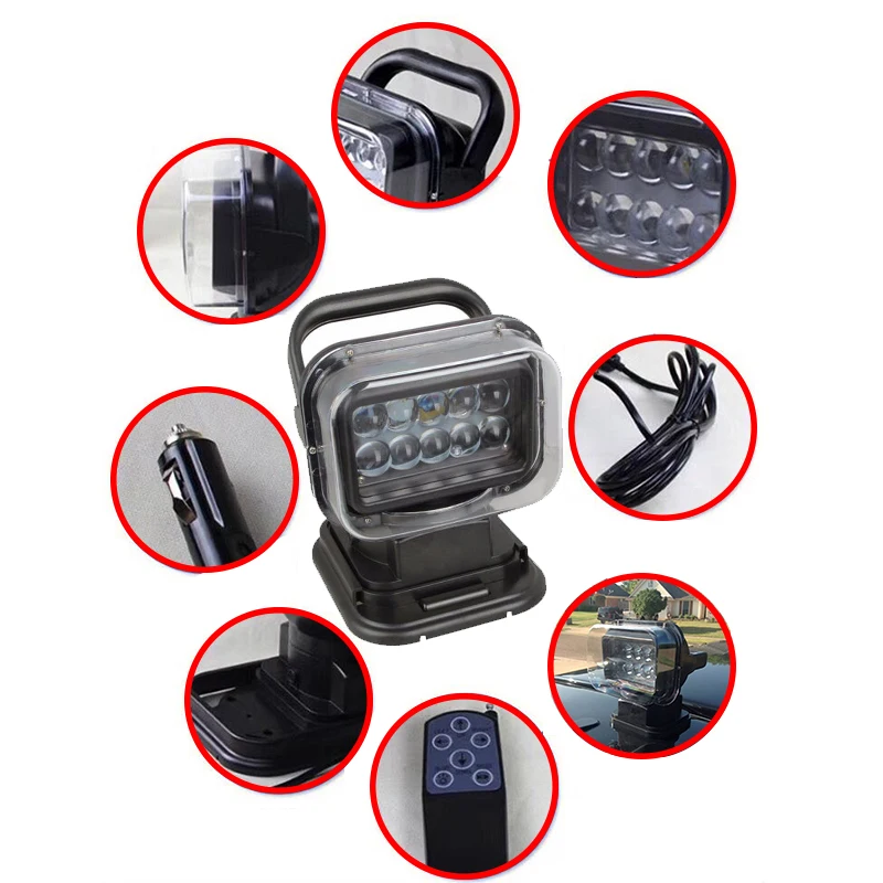 1Pcs 7 Inch 60W 360 Degree Wireless Remote Control Led Spotlight Marine Search Light 12/24v For Tru