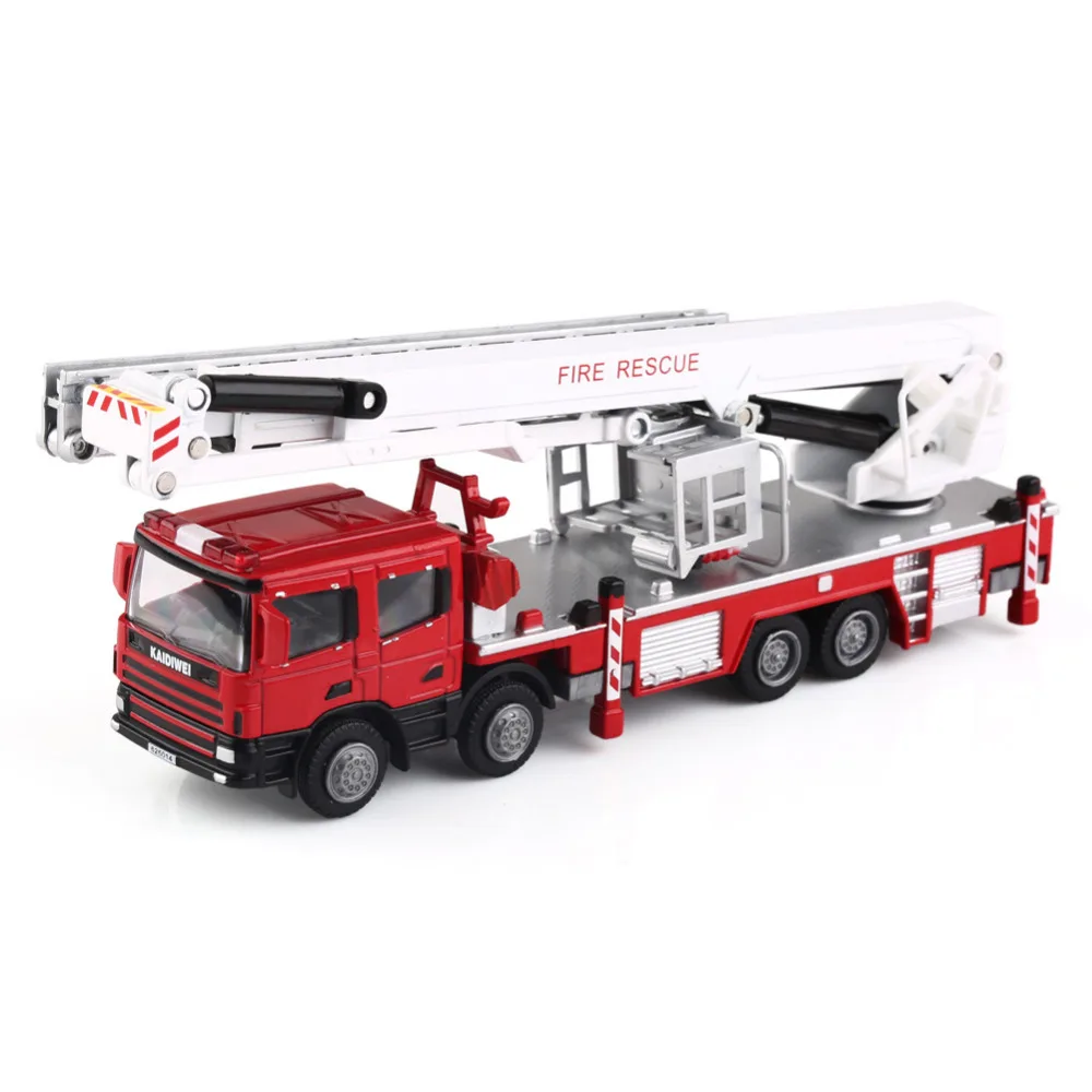 NEW Diecast Truck Model 1:50 Red Aerial Ladder Rescue Truck Fire Vehicle By KDW Home Decoration Uni