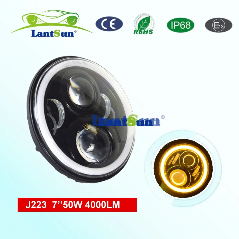 Pair J223 wrangler accessories black 7" 60w round high low led projector halo Headlamp for jeep wra